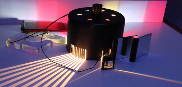 撥動吉他弦,同時轉(zhuǎn)動旋轉(zhuǎn)鼓,可以看到波紋的形狀,隨著音調(diào)的變化,波紋也會有所不同。