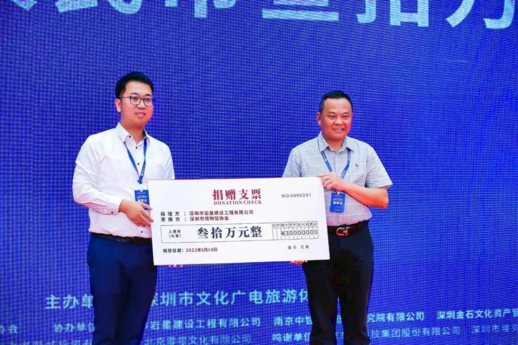 為支持深圳市文博事業(yè)的發(fā)展,深圳市巖星科技建設有限公司向深圳市博物館協(xié)會捐贈人民幣叁拾萬元。