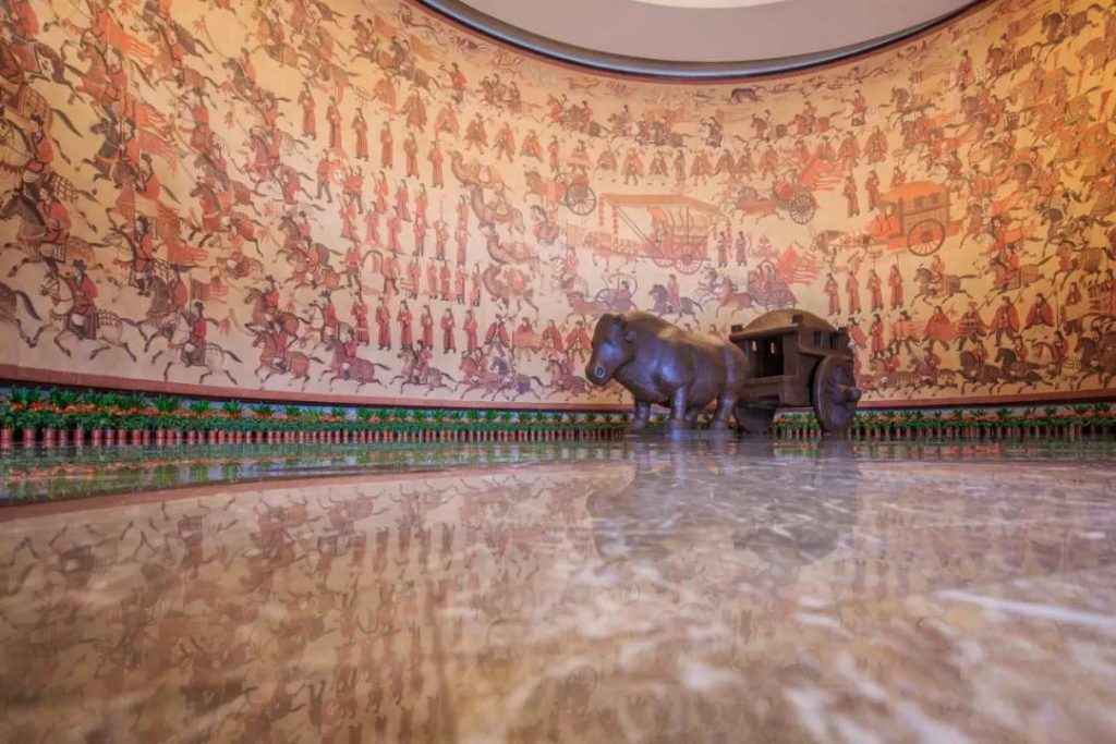 進(jìn)入大同博物館后,首先引起您注意的是大型壁畫-北魏的旅游地圖。高約15.5米,寬約50米。內(nèi)容是根據(jù)大同市沙嶺村北魏壁畫墓的“旅游地圖”,繪制的北魏貴族旅游場景。