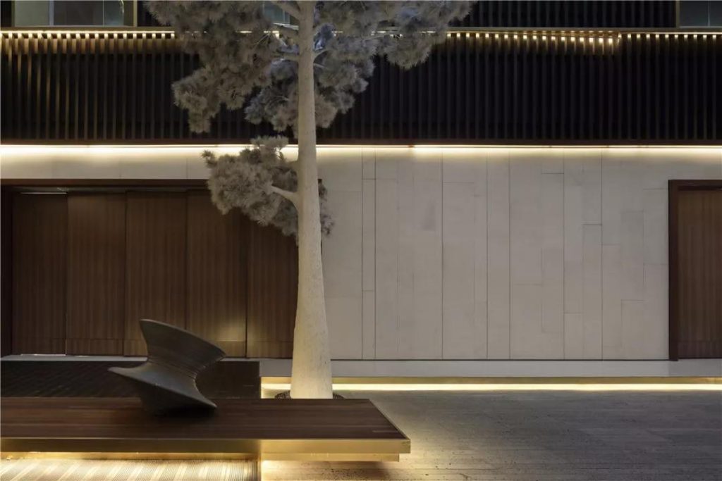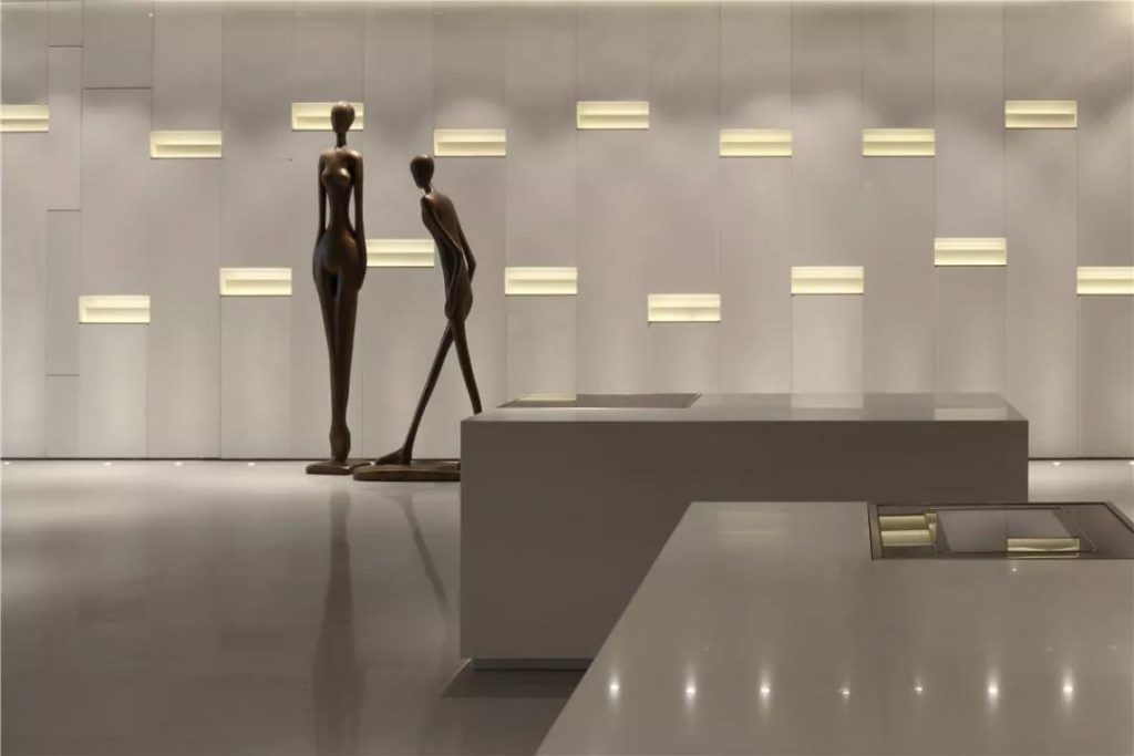 整體照明設(shè)計(jì)在展廳營(yíng)造出低調(diào)而隱蔽的氛圍,而公共區(qū)域照明則使用隱蔽的光源。反射照明或遮光照明柔和清潔,讓客人看到光與建筑的完美自然融合。大型玻璃門和玻璃窗使空間更加透明,您可以在窗外看到庭院,花壇和噴泉。輕松舒適。展廳中的現(xiàn)代家具和簡(jiǎn)潔的擺放位置使寬敞空間中的小細(xì)節(jié)令人耳目一新。