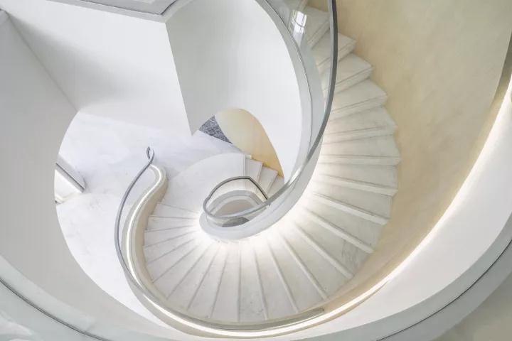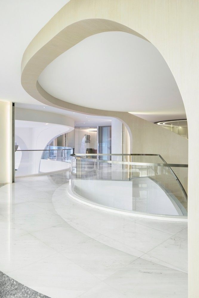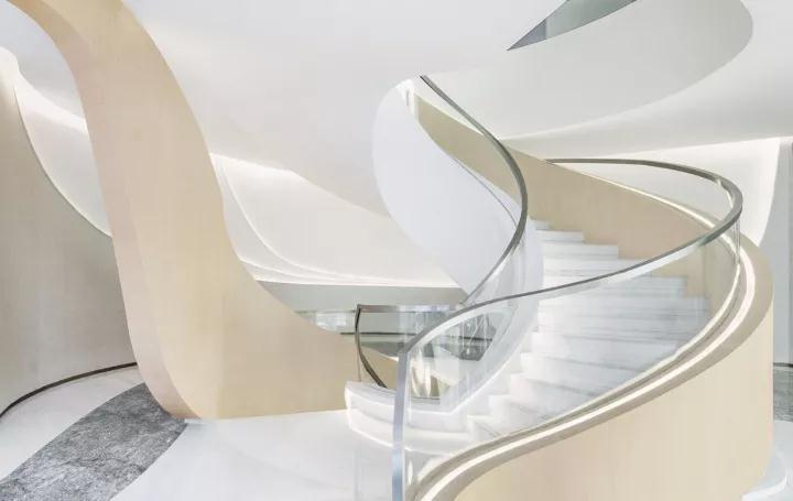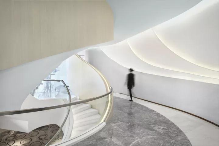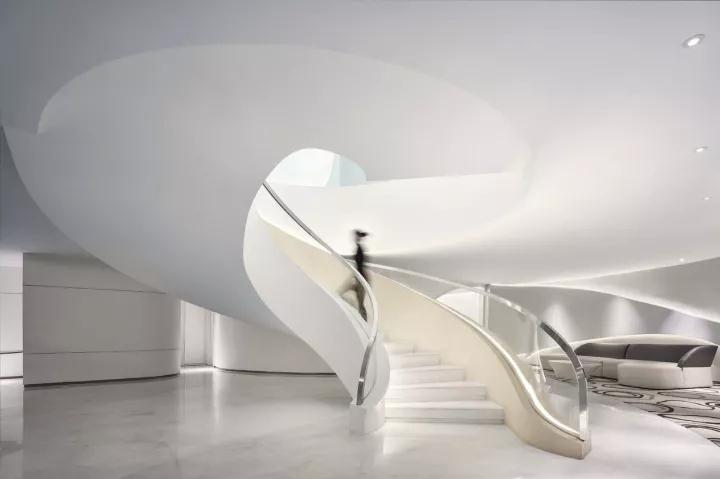 隨著蜿蜒明亮的線(xiàn)條與螺旋形的樓梯,用者逐步過(guò)渡以至最后完全融入未來(lái)的空間。