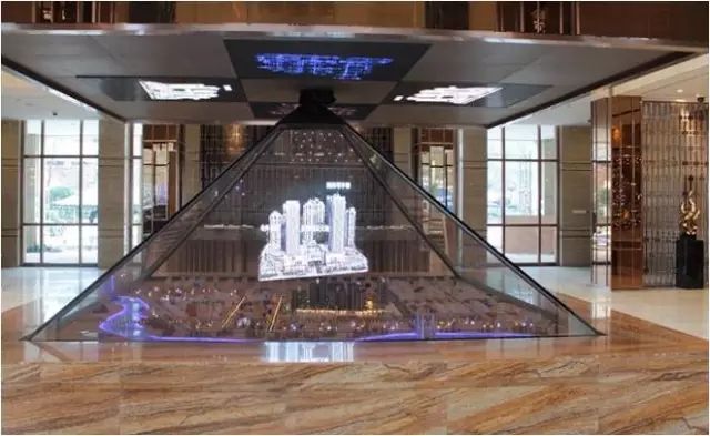 全息投影沙盤是利用全息成像技術(shù)制作的高科技數(shù)字沙盤,通過全息玻璃將三維圖像光學(xué)反射,在空中立體成像,給人以立體感和虛幻感。它主要是由全息投影和沙盤組合而成,通過安裝攝像機(jī),沙盤被折射,顯示在正三角或倒三角結(jié)構(gòu)的中心。