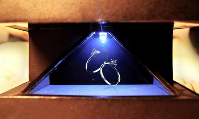360度全息柜,360度全息柜呈金字塔形,頂部四面透明,可以從360度的任意角度觀看3D圖像。成像顏色、對比度、清晰度都很好,空間感和透視性也很強(qiáng),帶來很好的立體成像效果和裸眼3D效果。