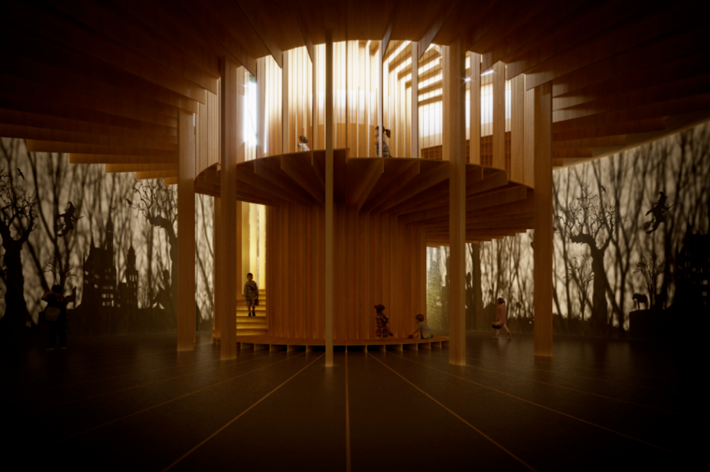 建筑師參照安徒生童話里的描述,將現(xiàn)有的博物館與“打火匣”合并成一個(gè)全新的童話體驗(yàn)中心。