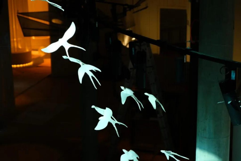 館內(nèi)裝置由丹麥剪紙藝術(shù)家Veronica Hodges純手工設(shè)計(jì)制作。以拇指姑娘的故事為靈感,以燕子為契機(jī),用翱翔的姿態(tài)表達(dá)了拇指姑娘對(duì)自由的向往。