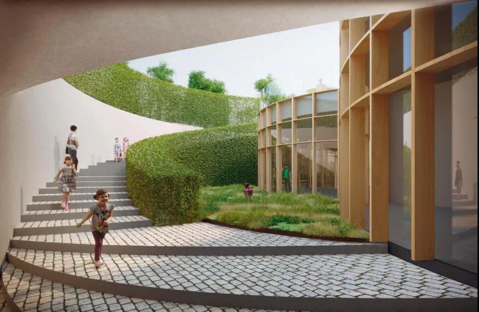 博物館占地5600㎡,包括一個(gè)兒童之家和一個(gè)地下博物館,與四周的魔法花園連接在一起。