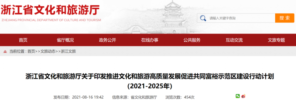 近日,浙江省文化和旅游廳印發(fā)《浙江省文化和旅游廳推進文化和旅游高質(zhì)量發(fā)展促進共同富裕示范區(qū)建設(shè)行動計劃(2021-2025年)》(以下稱《計劃》)。